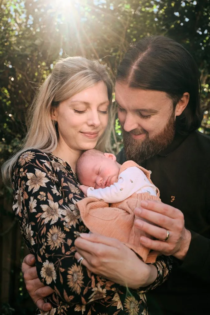 After capturing some beautiful indoor shots, we couldn’t resist the glorious weather, so we moved the session to the rear garden. The sunshine and fresh air added a wonderful touch, creating the perfect backdrop for more relaxed and natural portraits. The baby remained calm and content, making it a truly enjoyable experience for everyone.